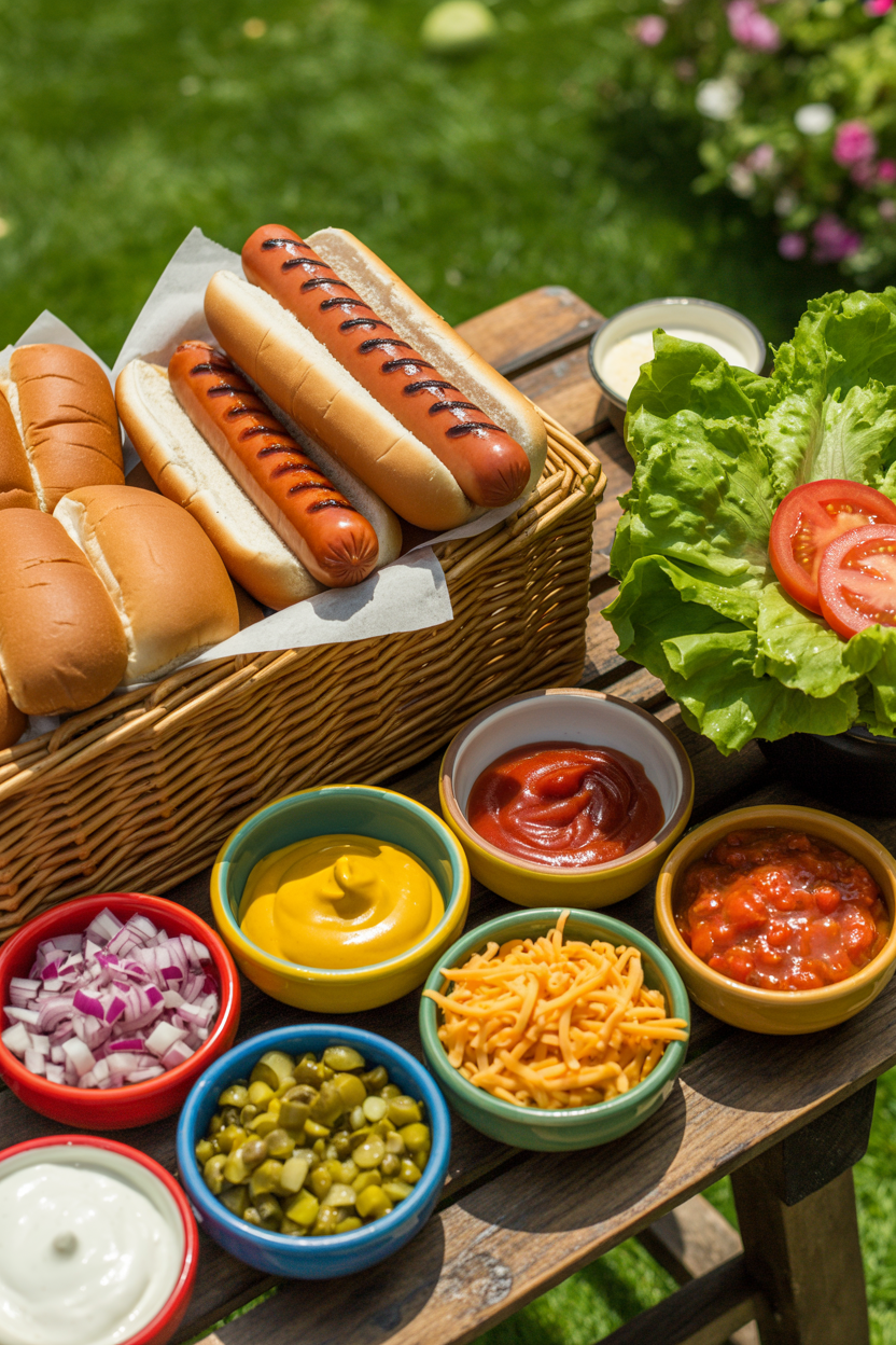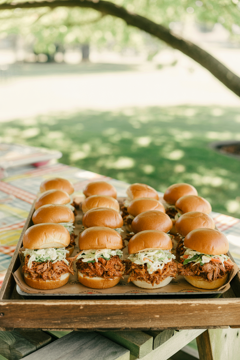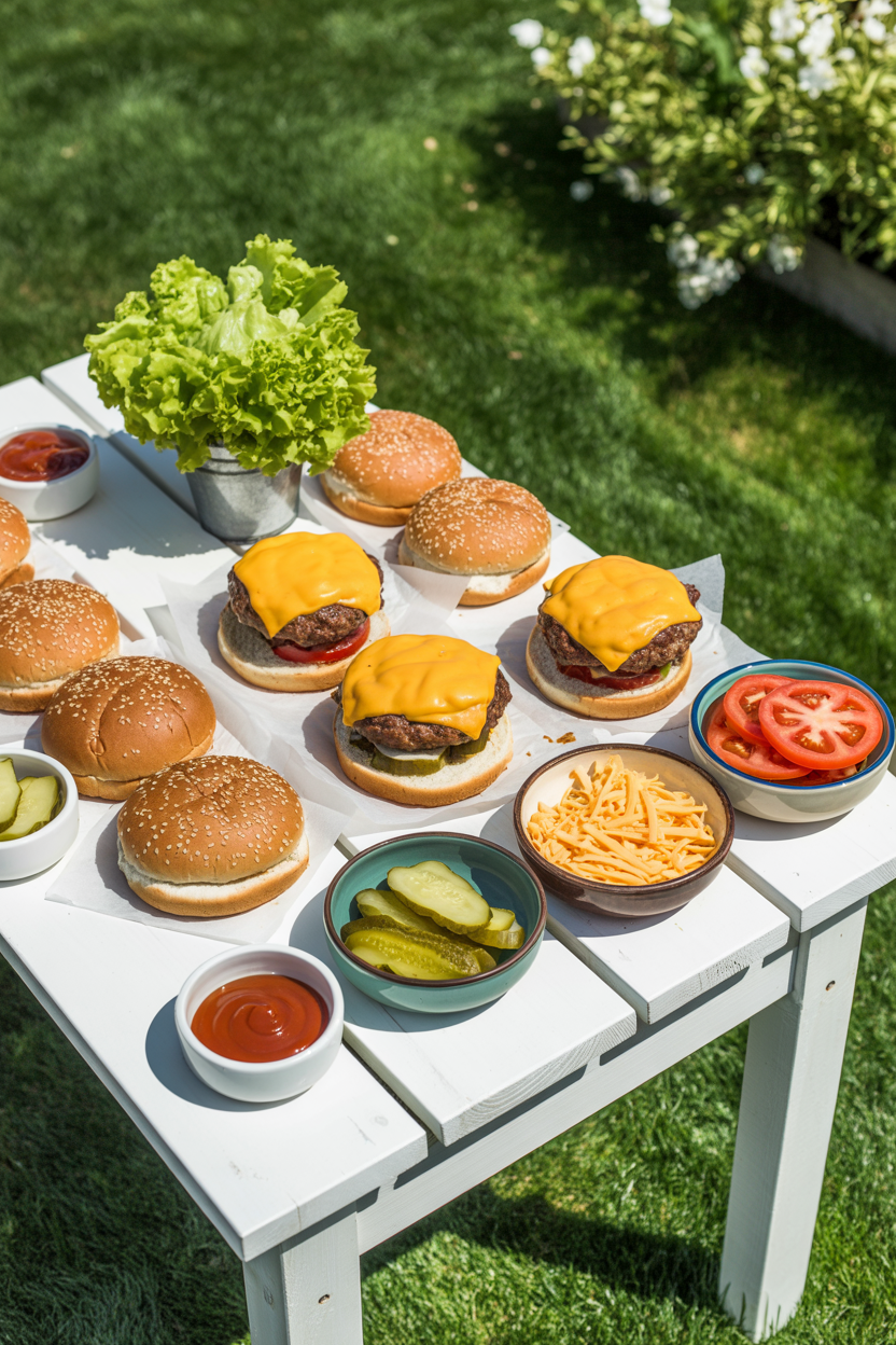 A toppings bar is one of the easiest ways to elevate classic BBQ food. Instead of pre-building burgers, I’ll set out cheeses, sauces, and fresh toppings in small bowls so guests can customize. It turns something simple into an interactive part of the party.
