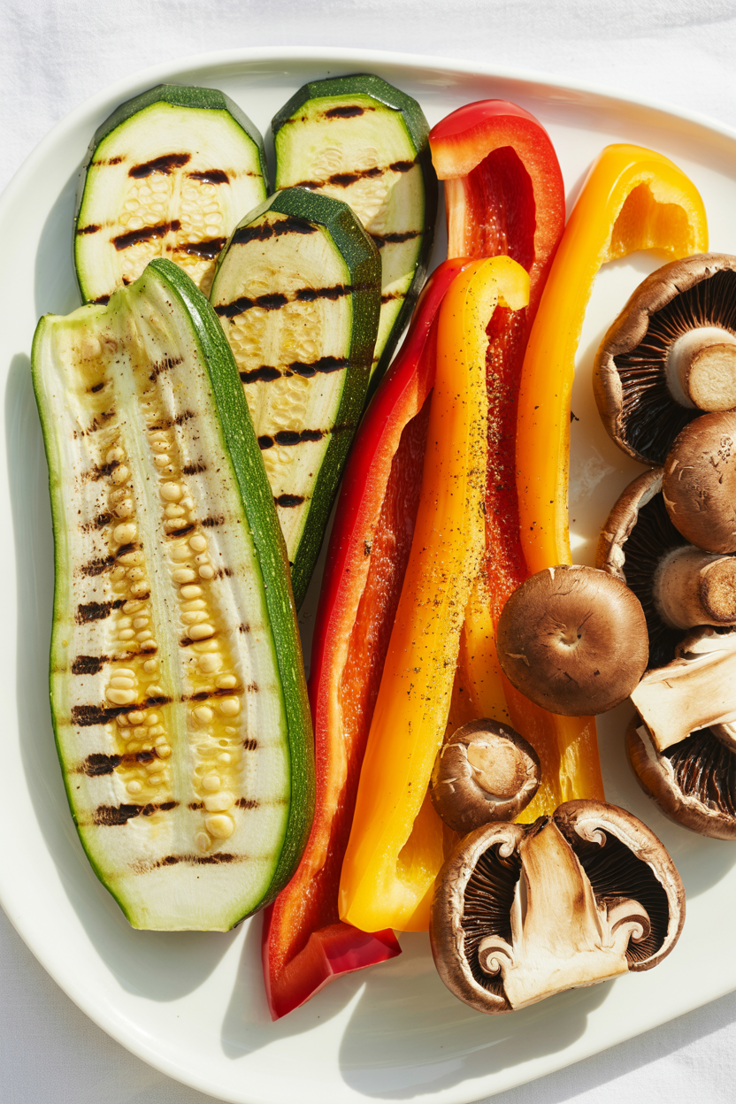 Not everything needs to be heavy. Grilled vegetables bring balance to outdoor BBQ food ideas, and they add so much color to the table. I usually choose whatever is in season and arrange it loosely for a more natural look.