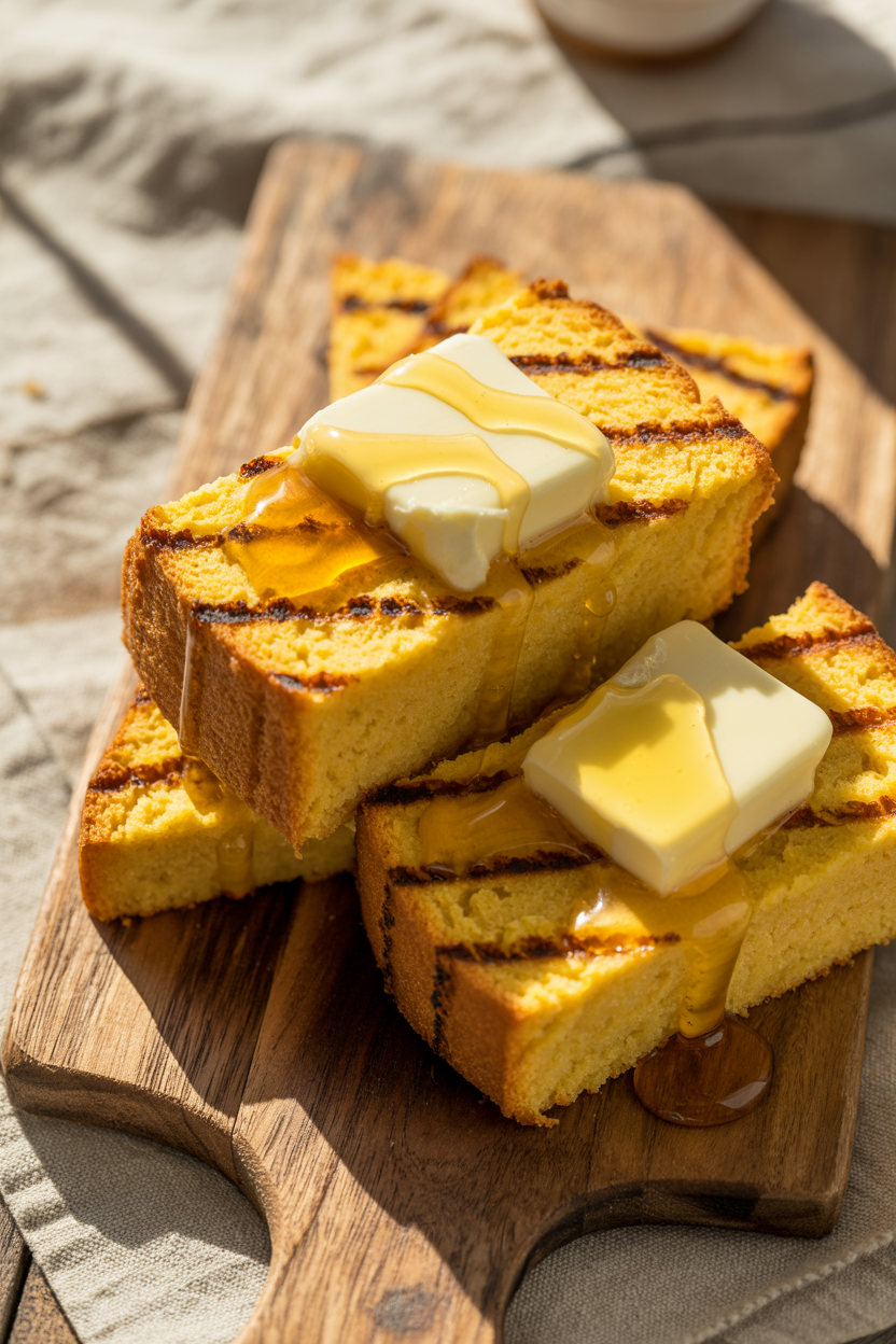 Cornbread adds texture and warmth to BBQ party sides. I grill it lightly for a bit of char, then serve it with softened butter so it feels just a little elevated.