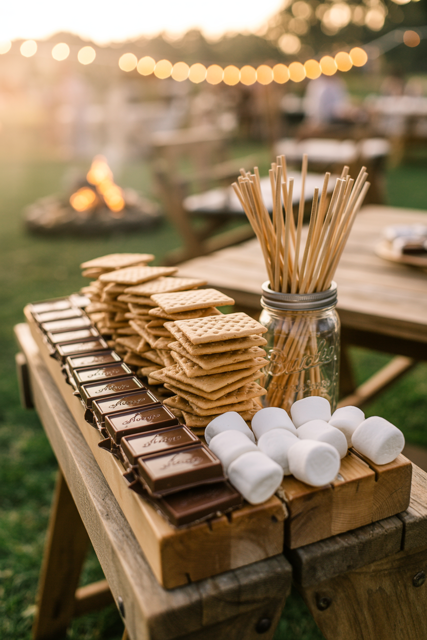 A s’mores setup creates a moment. For backyard BBQ party ideas food, I like to keep everything neatly arranged so guests can build their own without it feeling chaotic.