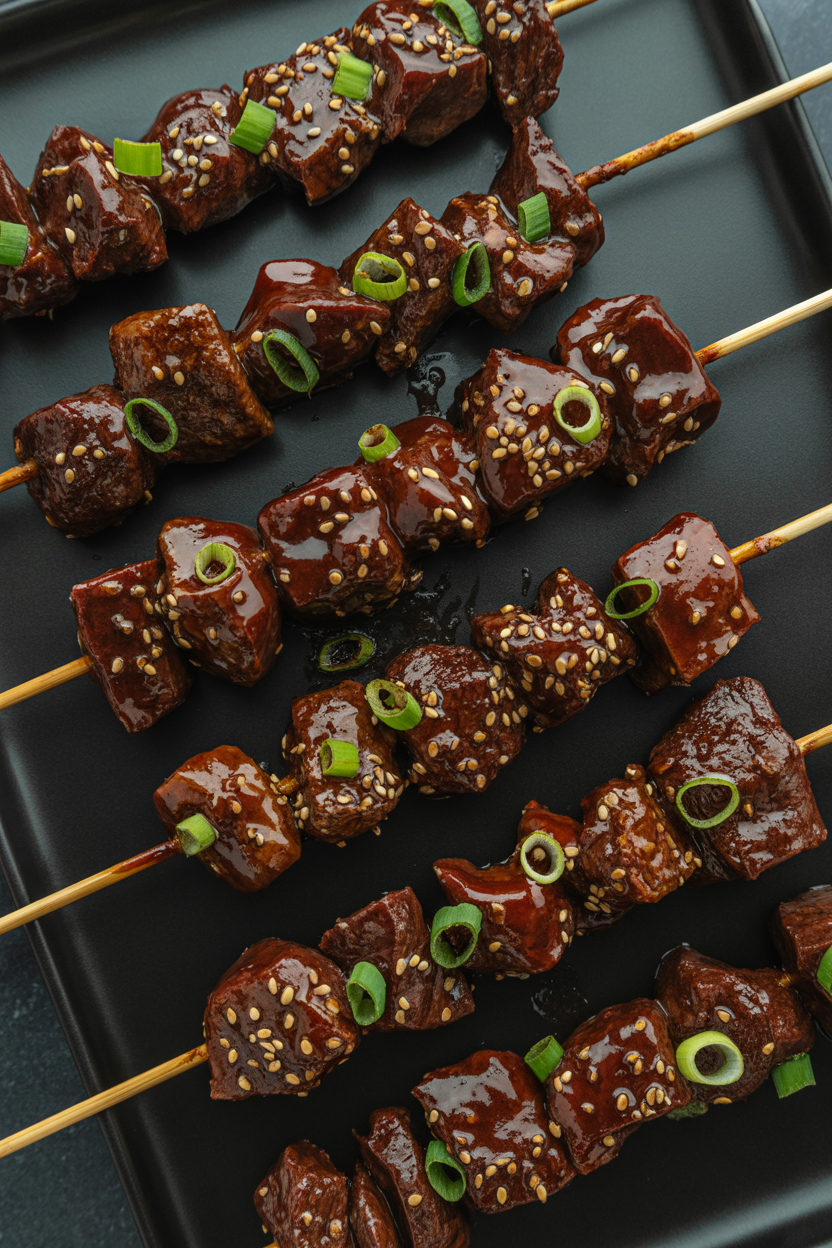 If I’m building a table with a mix of flavors, I’ll always include something like this. Korean BBQ food ideas add depth and a bit of contrast to more traditional dishes. I like to finish the skewers with sesame seeds and scallions for that clean, editorial look.