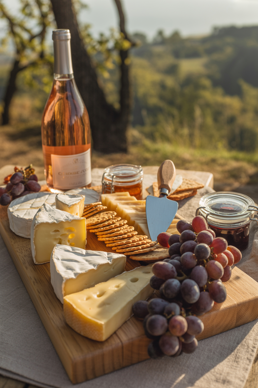 A wine and cheese pairing is effortlessly elegant. Choose a crisp rosé or bubbly and match it with soft cheeses, crackers, grapes, and a few artisan spreads. It’s minimal, transportable, and lends a romantic, European feel to your picnic setup.