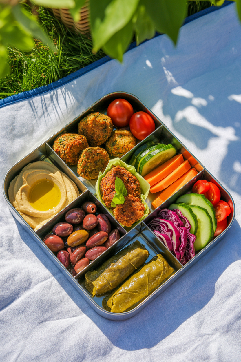 14. Vegan picnic bento with falafel and hummus