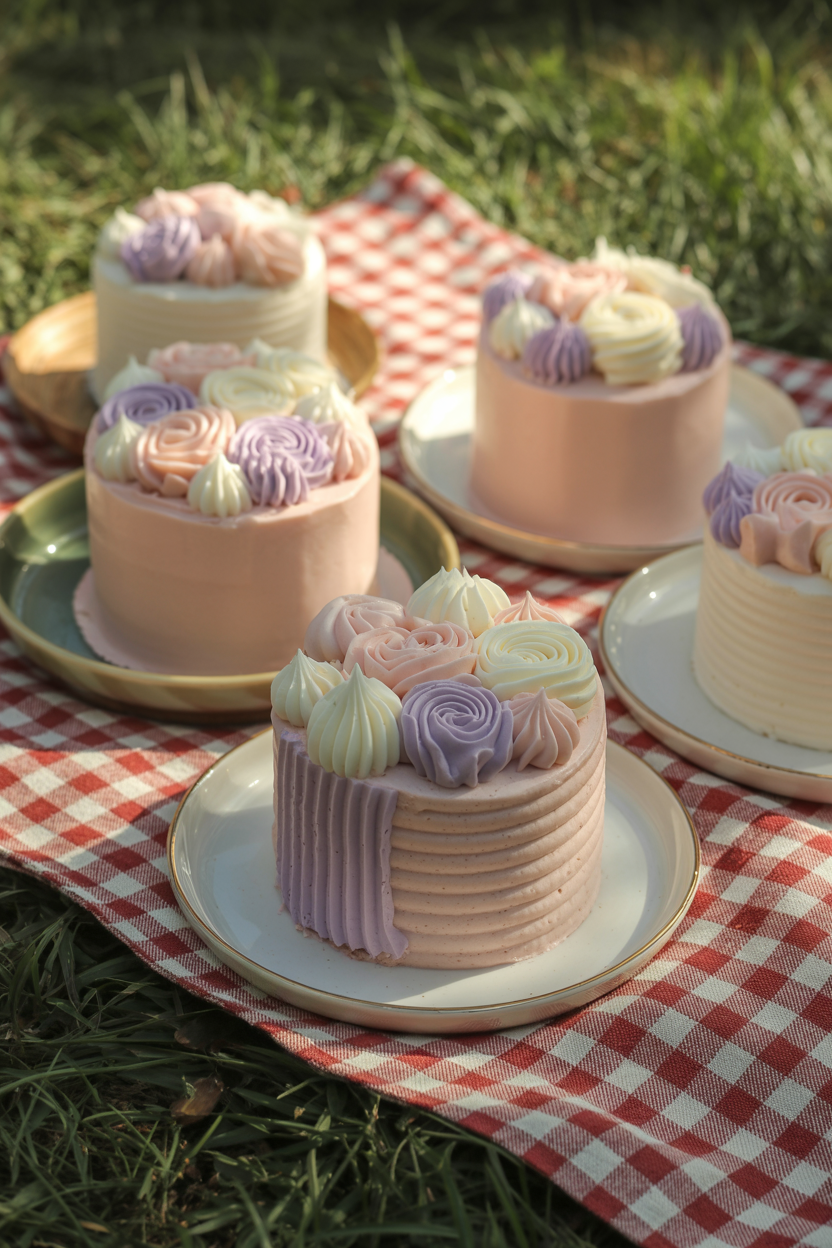 Small bento cakes are trending for good reason. They’re single-serving, beautifully frosted, and easy to personalize. Add a sweet message or floral piping to match your picnic theme. These picnic cake ideas are perfect for birthdays, anniversaries, or mini celebrations outdoors.