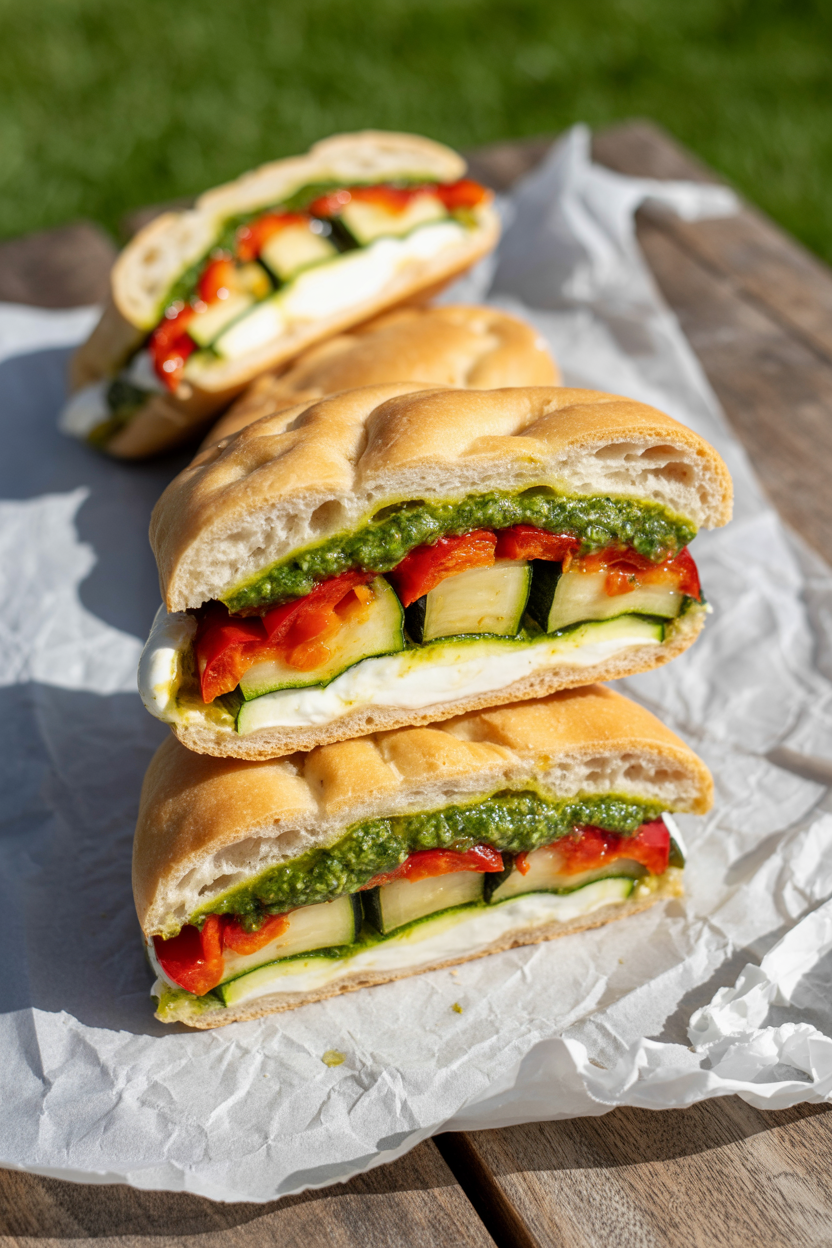 Pressed sandwiches hold up beautifully during transport. Use focaccia or ciabatta, layer in meats, roasted veggies, cheese, and pesto, then wrap and press overnight. When sliced, the colorful layers make these picnic sandwiches a feast for the eyes.
