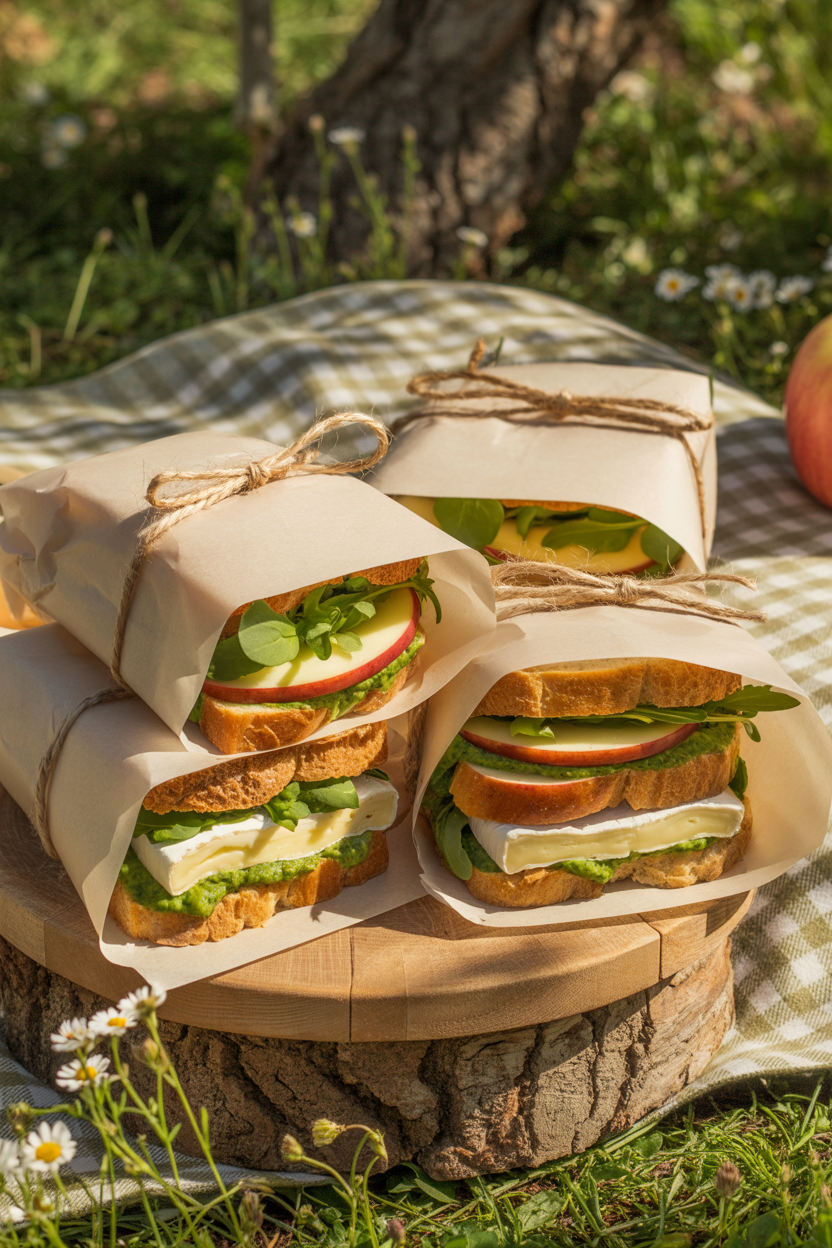 Mini sandwiches are a picnic staple, but the magic is in the styling. Use crusty baguette slices or soft rolls, fill them with gourmet ingredients like pesto chicken, brie and apple, or egg salad, then wrap each in parchment and tie with twine. These picnic sandwiches are cute, convenient, and oh-so-pinnable.