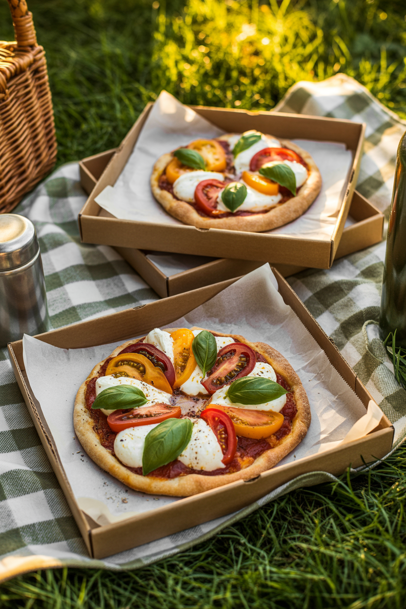 Elevate your pizza picnic by using flatbreads or personal-sized pies topped with ingredients like burrata, heirloom tomatoes, or truffle oil. Pre-slice and stack in parchment-lined boxes so they stay neat and photo-ready. Pizza is universally loved, and this version keeps it stylish and travel-friendly.