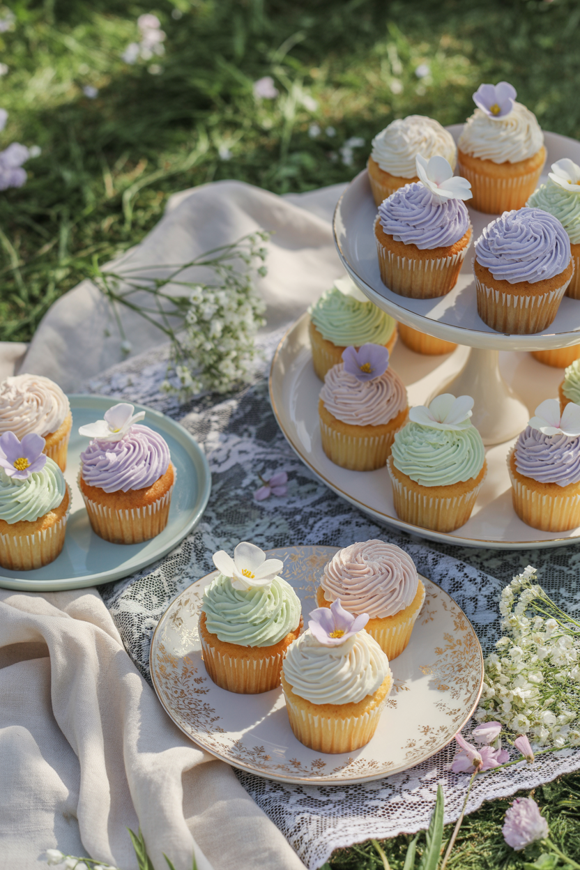 8. Picnic cupcakes in pastel shades