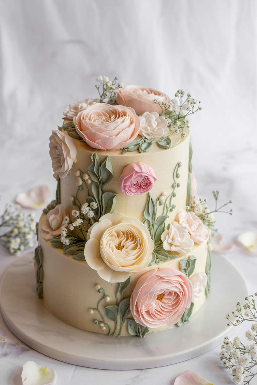 - Add height and texture with piping, florals, or layered designs