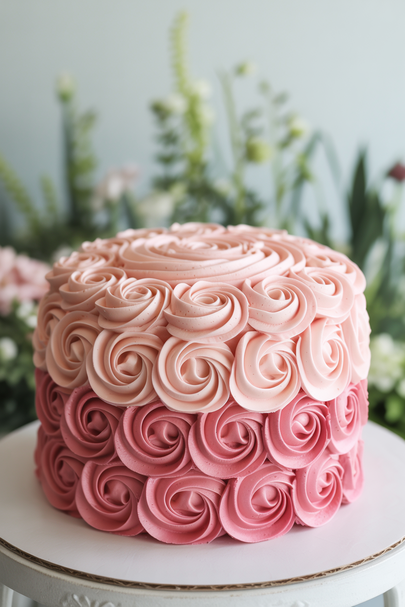 3. Pink ombre rosette cake