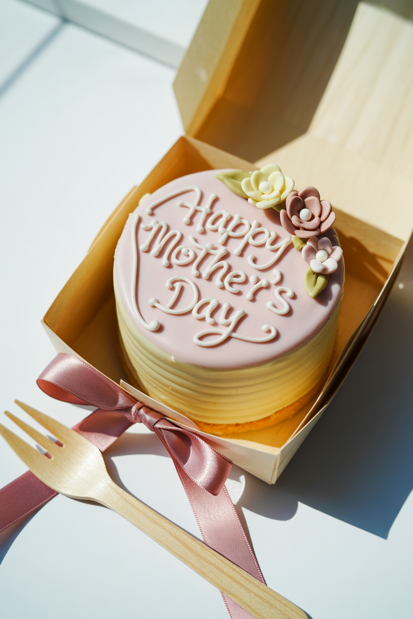 Bento cake Mother’s Day designs are trending for a reason—they’re adorable and perfectly sized. A small Mother’s Day cake with a handwritten “Happy Mother’s Day” message feels personal and modern. Keep the design minimal with soft pastel frosting and playful lettering for that signature bento cake aesthetic.