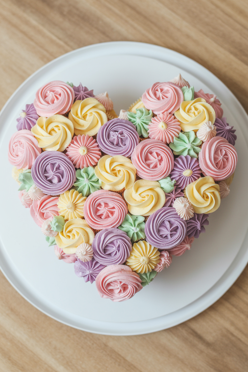A pull apart cupcake cake Mother’s Day design is perfect if you’re serving a crowd. Arrange cupcakes into a heart or floral shape, then frost them together so they look like one cohesive cake. It’s one of the most practical Mother’s Day cake ideas while still being fun and creative.