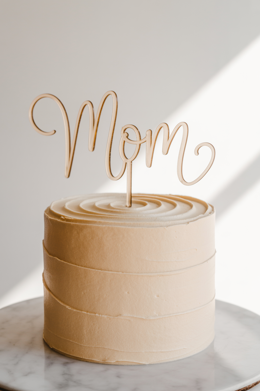 8. Minimalist “mom” script cake