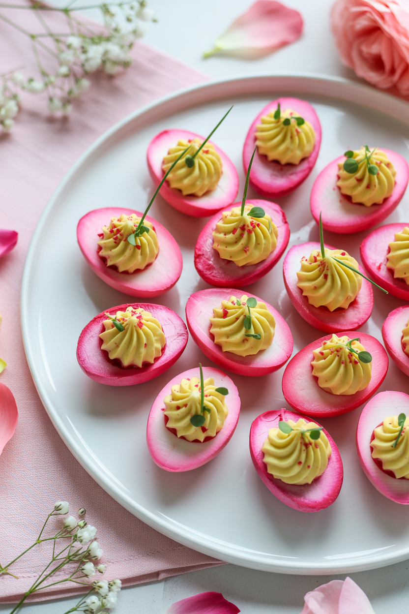 19. Pink deviled eggs