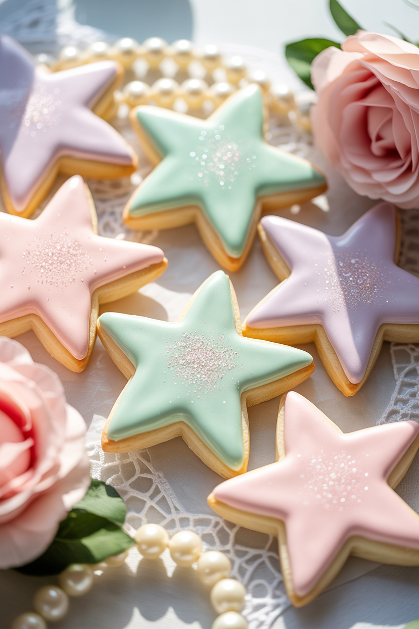 Star-shaped sugar cookies add a whimsical touch to your dessert table. Decorate them with pastel icing or edible glitter for extra sparkle. These baby shower cookies work beautifully for moon and stars themes or dreamy nursery-inspired showers.