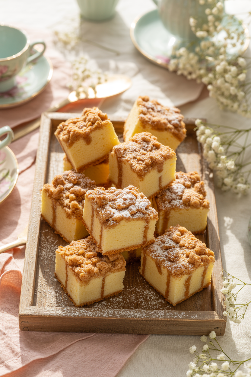 Mini coffee cake squares are a cozy addition to a baby shower brunch spread. The cinnamon crumb topping adds warmth and sweetness without feeling overly heavy. Serve them on a wooden tray for a charming bakery feel.