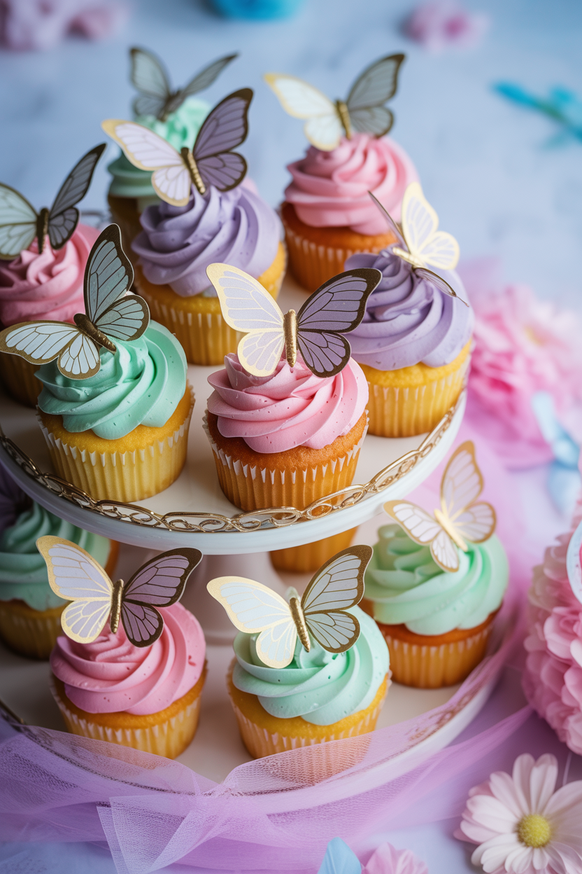 35. Butterfly-themed baby shower cupcakes