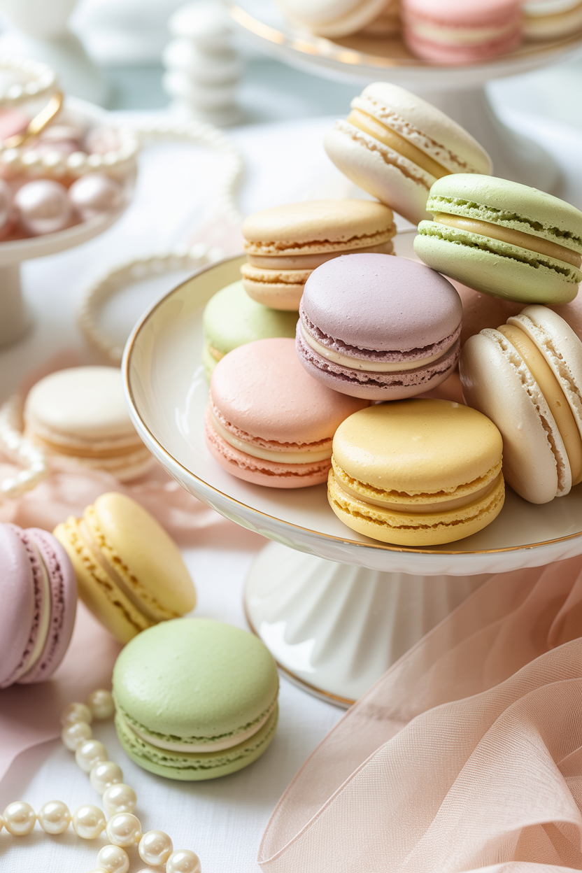 Pastel macarons are one of the most elegant baby shower desserts you can serve. Soft pink, mint green, pale yellow, and lavender macarons create a dreamy dessert display. Arrange them on tiered trays or stack them into a small macaron tower for a stunning centerpiece.