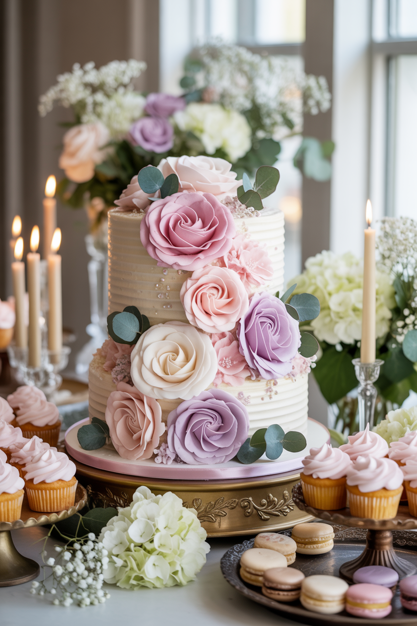 An elegant baby shower cake with floral decorations makes a beautiful focal point for the dessert table. Soft buttercream flowers, fresh blooms, or delicate piping can transform a simple cake into something special. Floral baby shower cakes work beautifully for garden themes, tea party showers, or spring celebrations.