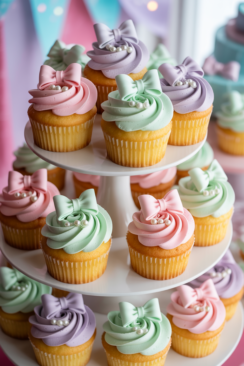 Cupcakes for a baby shower are easy to serve and simple to decorate. Add custom toppers like baby bottles, tiny crowns, or pastel bows to match your theme. A tray of baby shower cupcakes in pink, blue, or neutral tones creates a colorful and inviting dessert display.