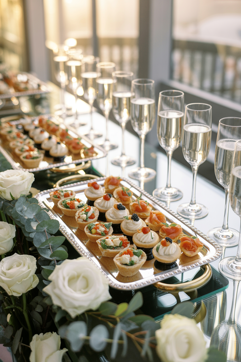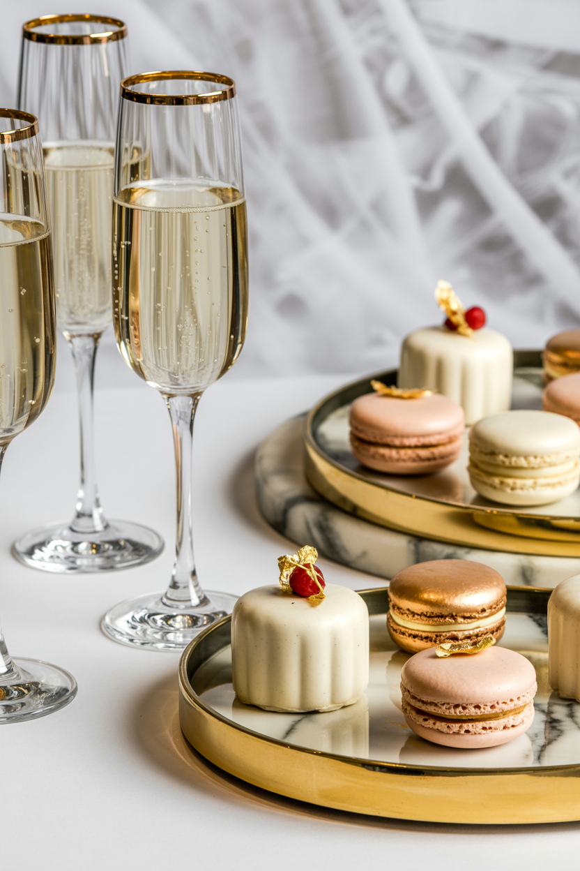 Pairing petite desserts with champagne adds a sense of occasion. Think mini éclairs, chocolate bites, or fruit tarts alongside flutes. It’s simple, but it feels incredibly intentional.