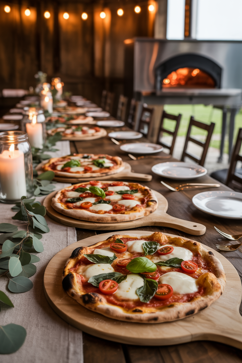 Pizza bars are unexpectedly elegant when styled well. A wood-fired element adds warmth, and offering a few curated topping options keeps it from feeling too casual.