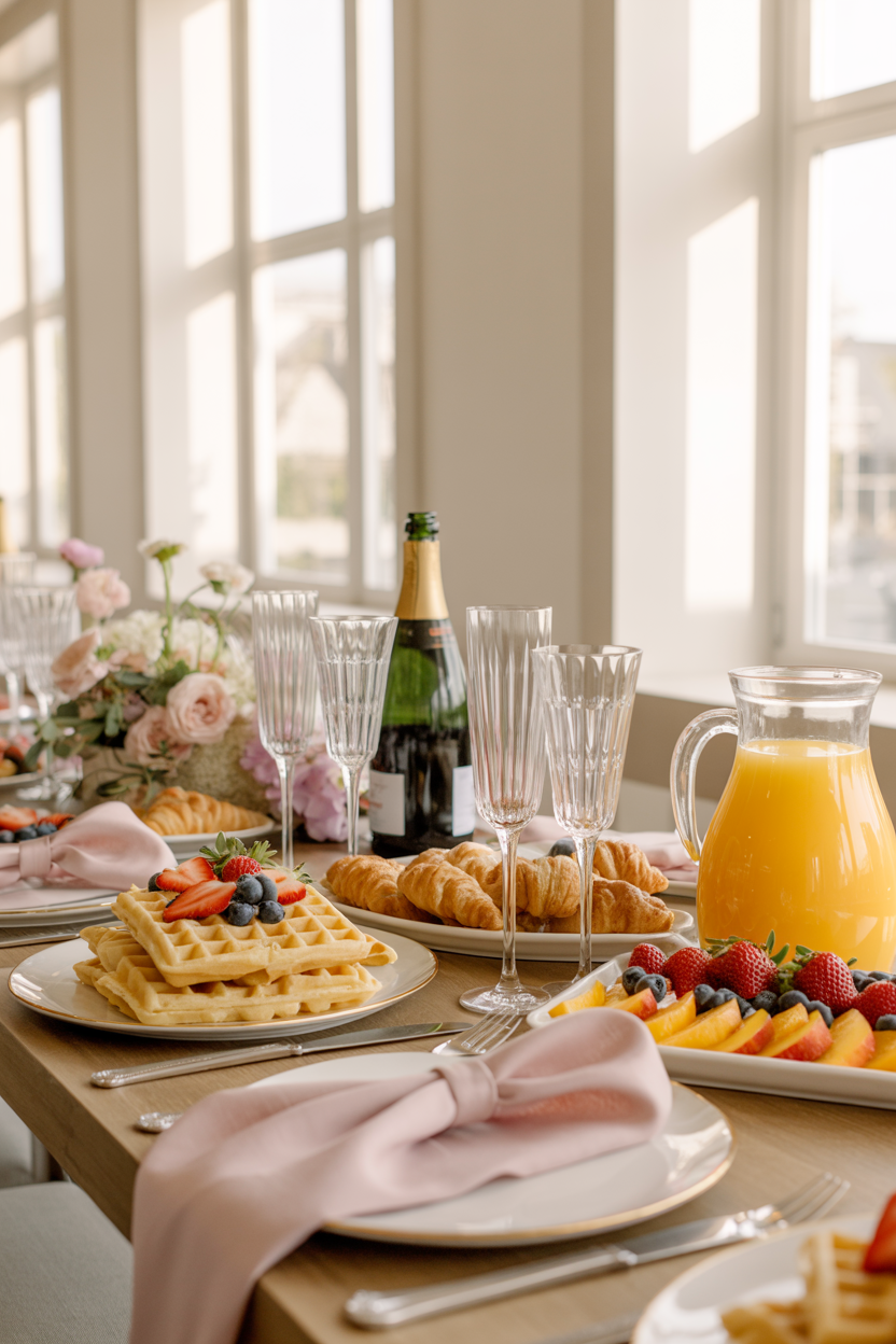 This is where I lean into blush tones, soft textures, and delicate presentation. It’s less about quantity and more about creating a cohesive, romantic look across the table.
