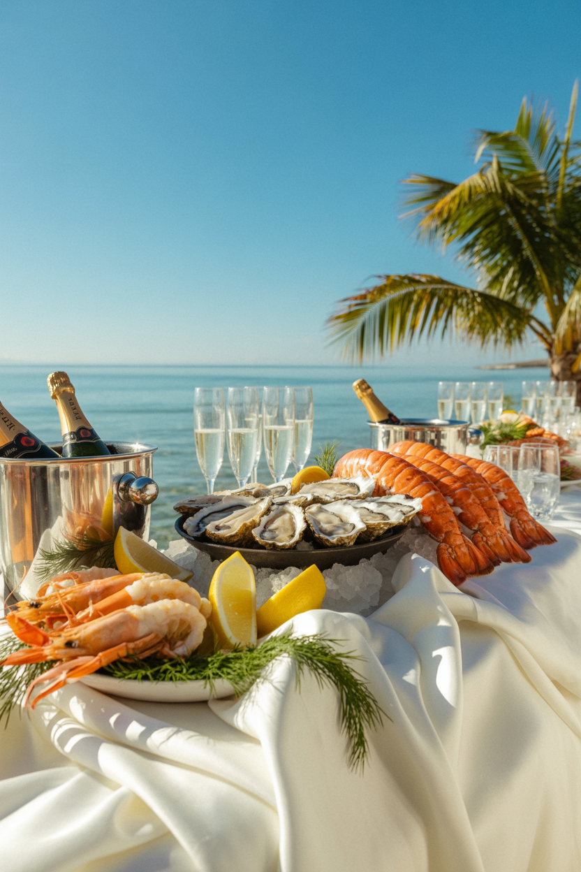 For a beach setting, I always recommend keeping the menu fresh and light. Seafood, citrus, and chilled dishes complement the environment and keep everything feeling cohesive.