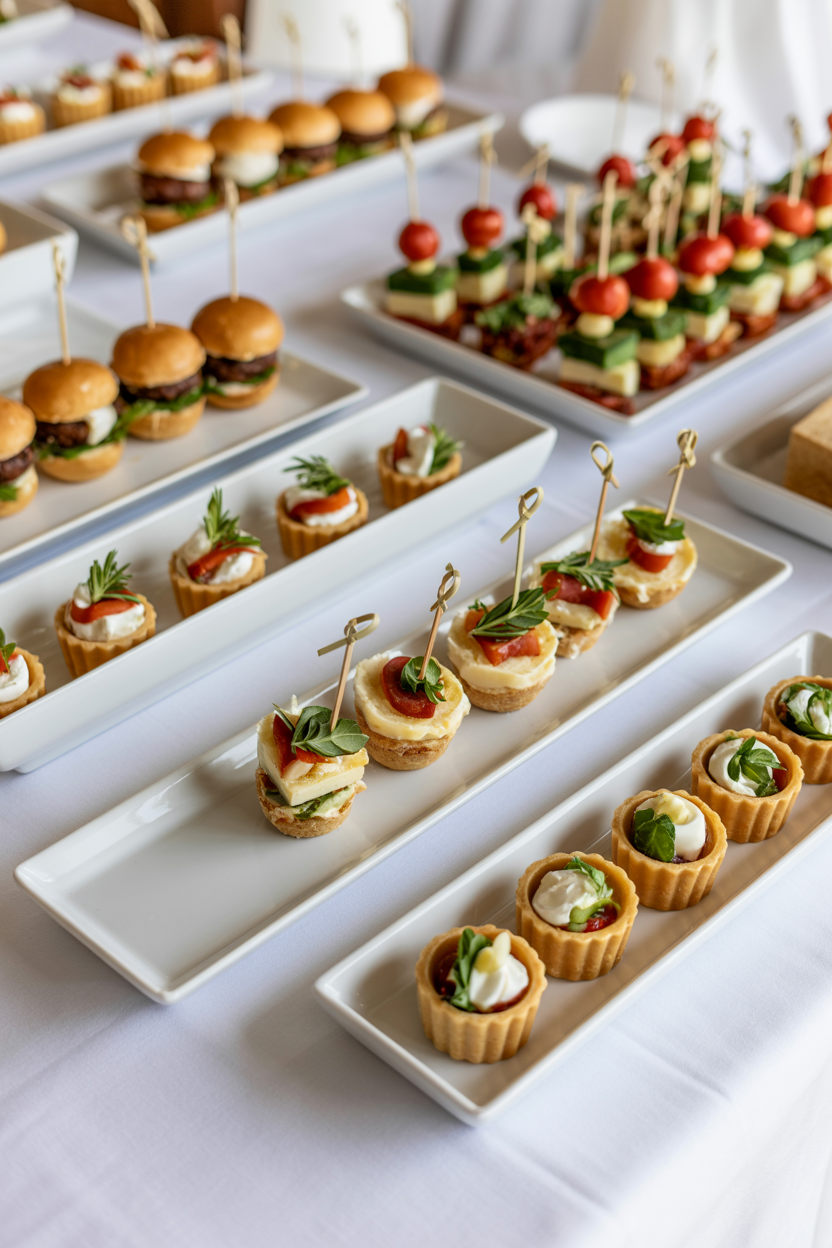 Finger foods are practical, but they can still be beautiful. Mini sliders, skewers, and bite-sized options allow guests to move freely while still enjoying the menu.