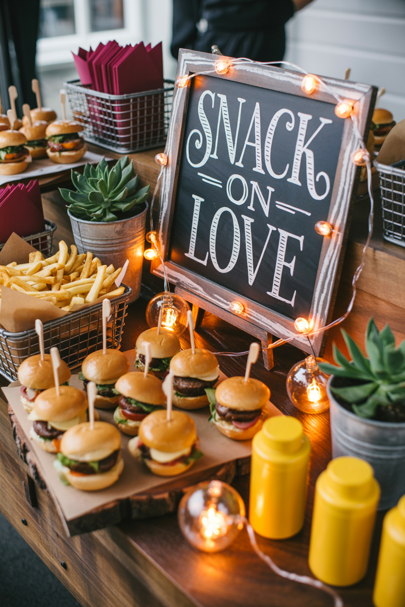 Late-night snacks are always appreciated. Sliders, fries, or even nostalgic fast food options give guests a second wind and add a playful touch to the evening.