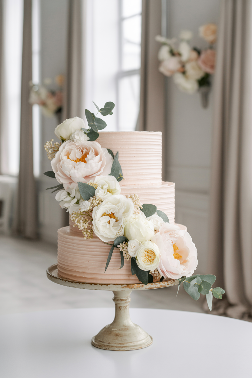 A well-styled wedding cake isn’t just dessert—it’s a focal point. I love soft buttercream finishes paired with cascading florals or delicate piping. Place it on a pedestal with space around it so it feels intentional, not crowded.