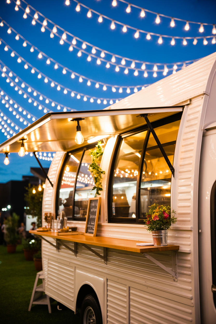 Food trucks bring personality into the reception. I recommend keeping the menu focused so it feels curated rather than overwhelming.