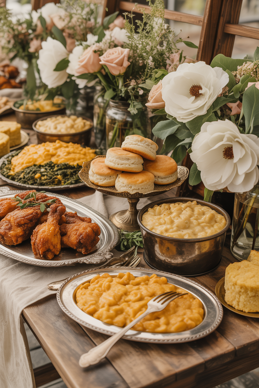 Southern food brings richness and familiarity. Fried chicken, biscuits, and classic sides feel generous and satisfying when styled with care.