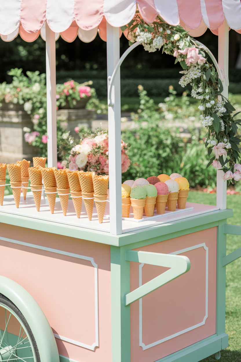Ice cream carts add movement and charm. They’re especially great for warm-weather weddings and bring a light, celebratory feel.